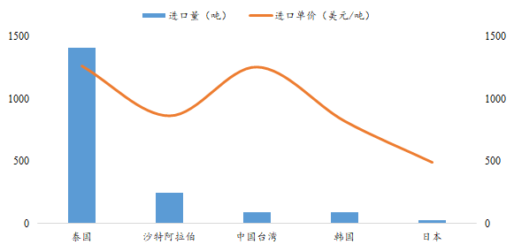 3月,中国双酚A进口来源地主要集中在泰国,占总进口量的75%以上,沙特阿拉伯、台湾、韩国对中国也有少量双酚A的出口,不同地区进口货源价差较大。